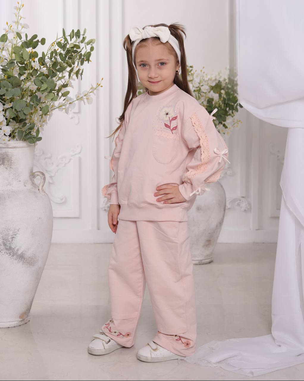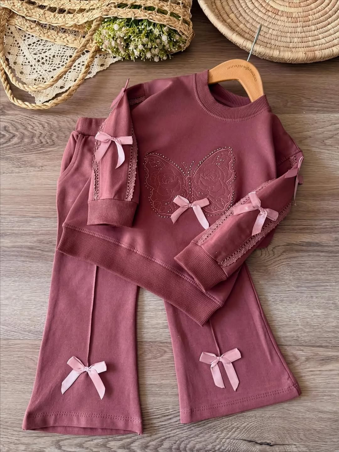 ست بلوز شلوار دمپا با گلدوزی پروانه
