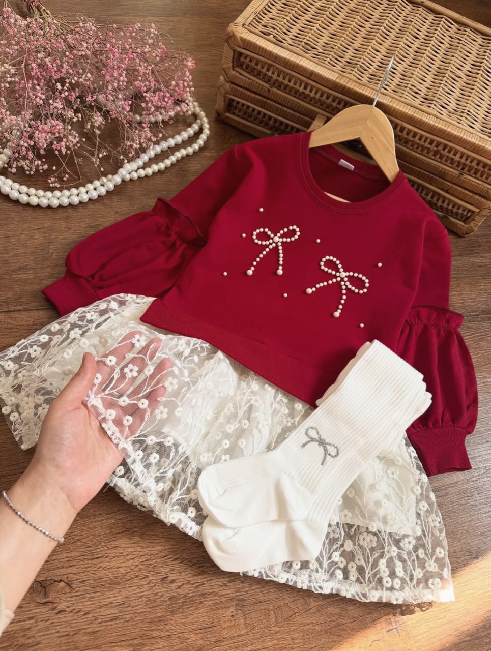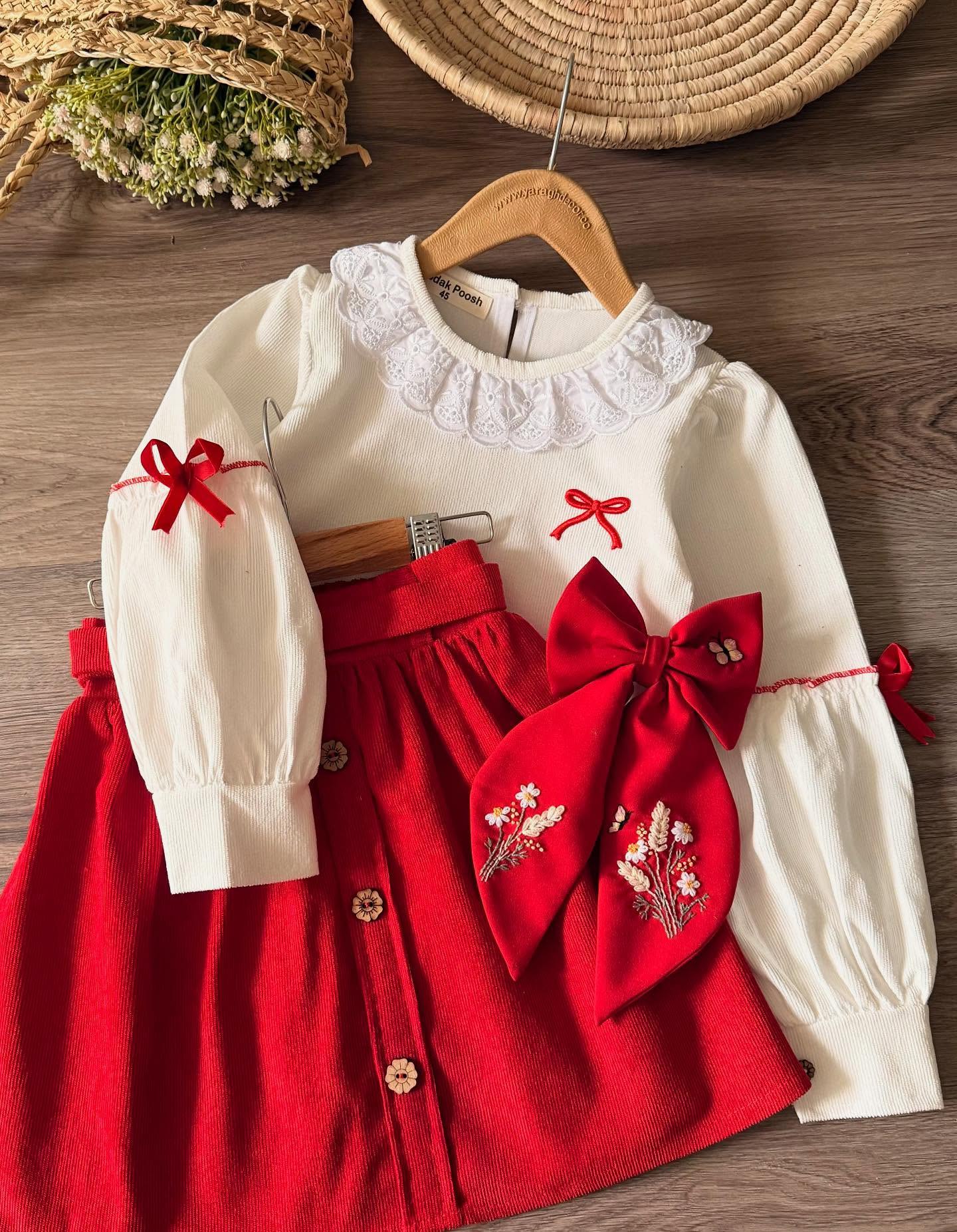 شومیز دامن چین دار گل برجسته مدل گیسو
