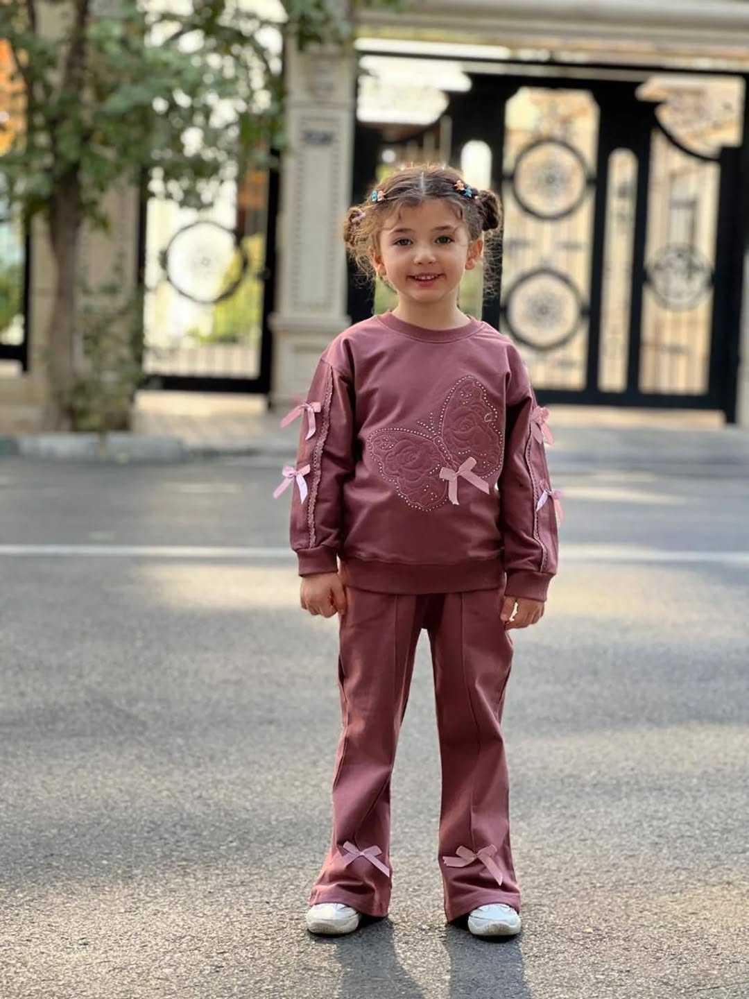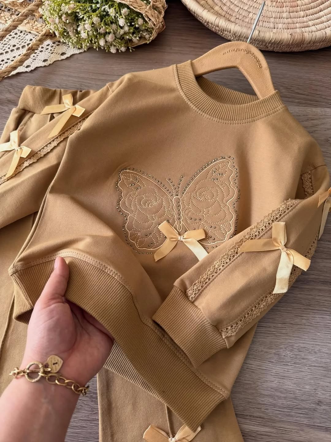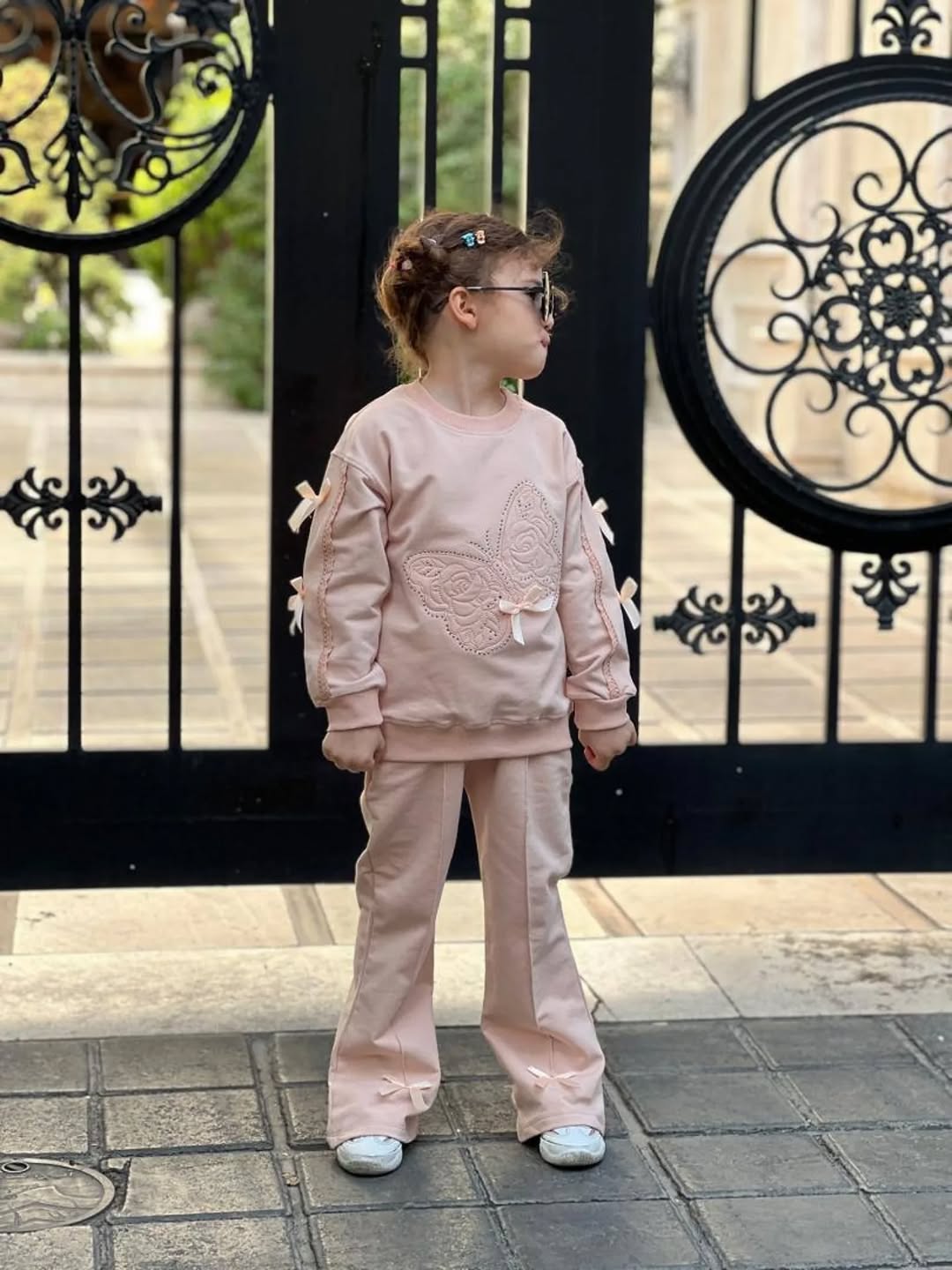 ست بلوز شلوار دمپا با گلدوزی پروانه